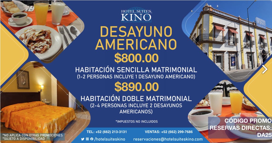 $890 MXN* Double Standard Room (American breakfast for 2 persons included)