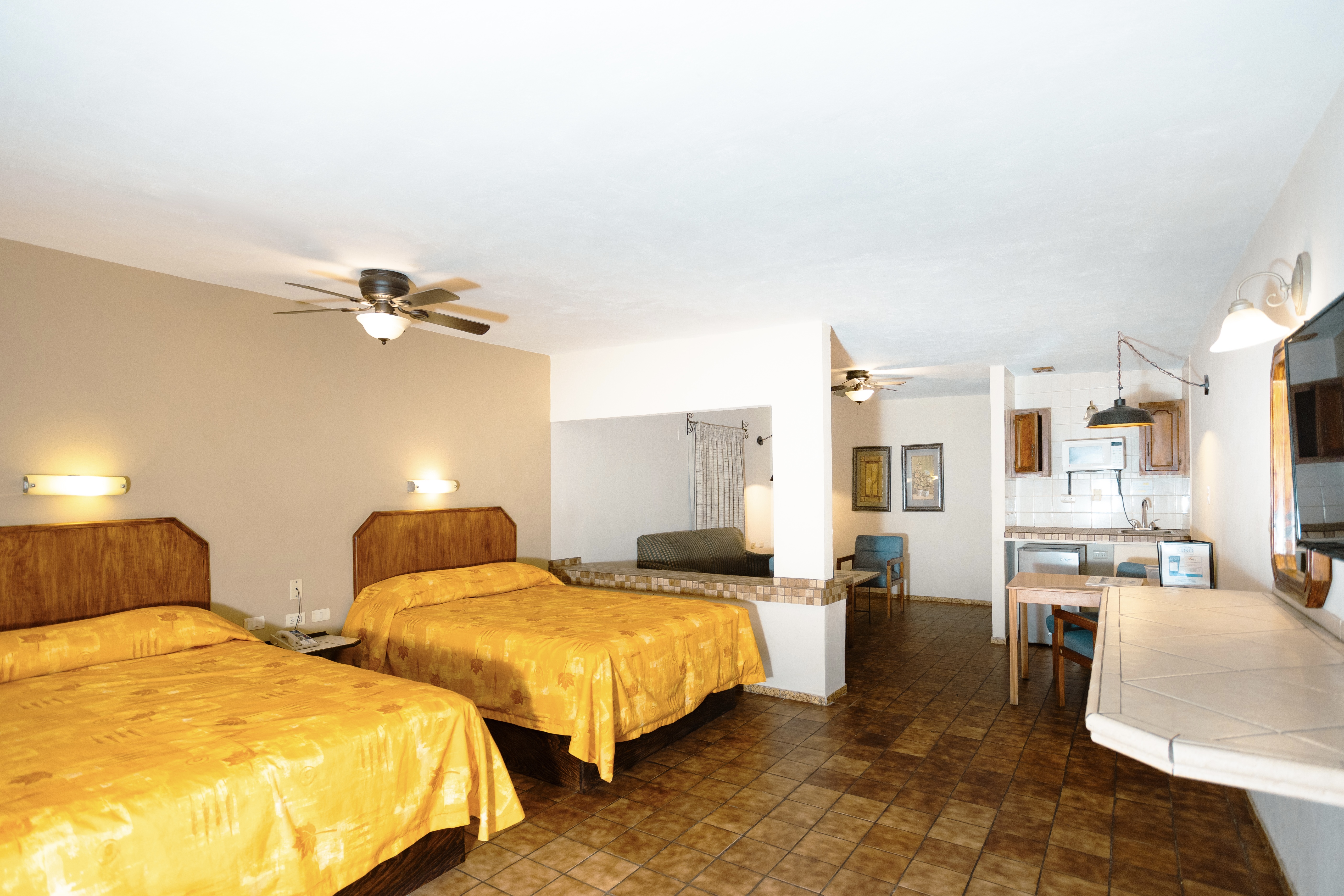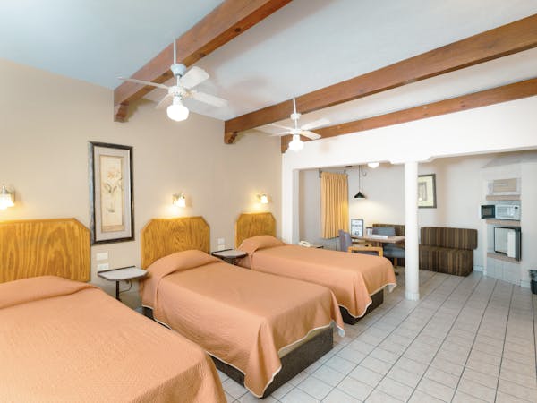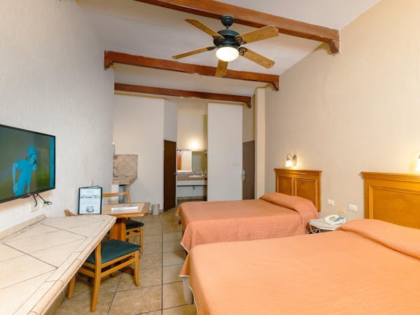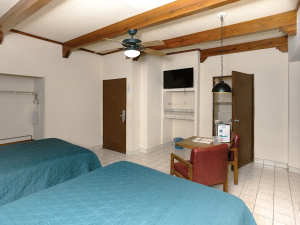 Enjoy more space and amenities in this room equipped with two double beds, a minibar, and microwave oven—ideal for families, friends or extended stays. It features a private bathroom, air conditioning, free Wi-Fi, and cable TV.