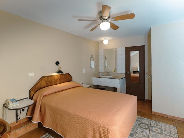 Ideal para parejas o viajeros que valoran un espacio funcional con extras. Esta habitación cuenta con una cómoda cama matrimonial, frigobar y microondas, además de baño privado, aire acondicionado, Wi-Fi gratuito y televisión por cable.